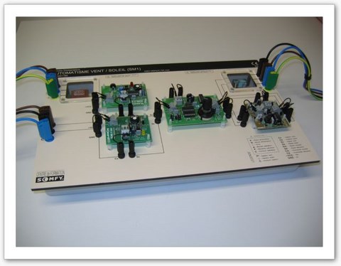 A motorized awning is associated with the combined wind/Sun sensor that captures the Sun's radiation and recorded the speed of the wind. The automation pilot opening and closing of the store on the basis of these two parameters. The information processing is carried out by three different technical solutions: A wired logic solution: solution industrial legacy. It allows design to address the distinction between the combinatorial logic and sequential logic. A microcontroller solution. A solution by PLC 'joy '.