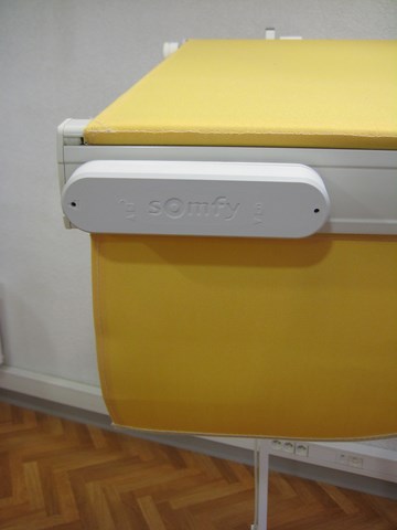 A motorized awning is associated with both Sun and wind sensors that capture the Sun's radiation and recorded the speed of the wind. The io - homecontrol coordinated to the remote control interface pilot opening and closing of the store on the basis of these two parameters. The information processing is achieved through new technology SOMFY io - homecontrol which has the advantage of giving feedback.