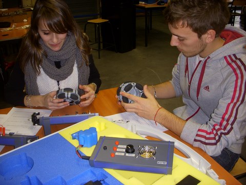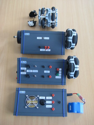 STI2D : Le pack didactique " Energis - Déplacement Robot " complète le Pack didactique " Innovatis - Robot ROVIO " ci-dessus en permettant à l'élève d'étudier toute la chaîne d'énergie. Il se compose de quatre maquettes individuelles pour une approche expérimentale et scientifique des constituants de cette chaîne d'énergie. Les activités des élèves portent sur l'ensemble des constituants depuis la batterie jusqu'aux roues holonomiques. En terme de mobilité, ce robot est très intéressant et innovant car il n'y a aucune articulation mécanique sur les roues. Les changements de direction sont uniquement dus à la gestion de la vitesse de rotation de chacune des roues et bien entendu à la technologie originale et innovante des roues holonomiques.