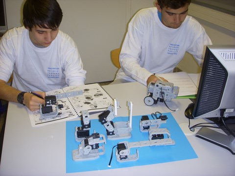 Le Pack didactique " MODULES D'APPRENTISSAGE ROBOT " est composé de huit modules d'initiation à la robotique complétés par des idées de projet. L'élève s'initie au fonctionnement d'un robot en travaillant à partir d'un module comprenant un ou deux servomoteurs, un pack batterie, une carte contrôleur pour la programmation PC, les pièces mécaniques et accessoires. Les modules proposés représentent des systèmes automatisés utilisés par l'homme afin de l'aider dans les différentes tâches du quotidien ou de l'environnement professionnel : élément de confort, élément de pilotage et de mesure. Afin de permettre un approfondissement, un lot de pièces mécaniques et des servomoteurs sont fournis en pièces détachées pour la réalisation de projets (des pistes sont également proposées).